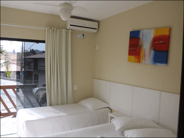 Nossa pousada possuí 09 apartamentos com cozinha completa, com refrigerador, fogão e forno de microondas, banheiros brancos com ótima ducha quente, Ar-condicionado, Internet WI-FI, TV a Cabo de LED 32″, Cama Box, Cadeiras de Praia, Guarda-Sol.